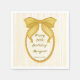 Yellow coquette retro stripes bow birthday party napkin
