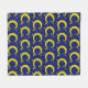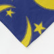 Fleece blanket design features an original marker illustration of a yellow crescent moon and stars on a midnight blue sky.