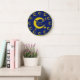 Yellow Crescent Moon Blue Night Sky Star Astronomy Large Clock