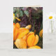 Blank greeting card featuring vibrant image of blossoming yellow crocuses. Perfect for spring greetings.
