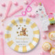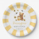 Delight in the whimsy of a gender-neutral or boy baby shower with these charming paper plates featuring watercolor yellow sunflowers, honey bees, and a cute bear.
