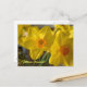 Postcard with a photo of yellow daffodils. The text ¡Felices Pascuas! in yellow letters. Customisable.