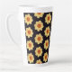 Chill out with a coffee latte in this ceramic mug that features a wrap-around photo image of a yellow Dahlia flower on a black background printed in a repeating pattern. A lovely, floral design! Select your latte mug size.