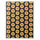 A personal sized, spiral bound notebook that features the cover photo image of a yellow Dahlia flower on a black background and printed in a repeating pattern. A fun, floral design! Use as a journal or to keep important notes.