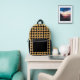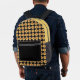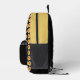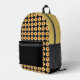 Travel with this stylish and trendy backpack that features the image of a yellow Dahlia flower bloom on a black background and printed in a tiled pattern on front side only. A fun, floral design! Top of backpack is a matching, solid yellow colour. Sides, back, and zippered pouch are black.