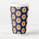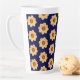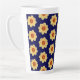 Chill out with a coffee latte in this ceramic mug that features a wrap-around photo image of a yellow Dahlia flower on a navy blue background printed in a repeating pattern. A lovely, floral design! Select your latte mug size.