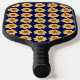 Pickleball paddle that features the photo image of a yellow Dahlia flower on a navy blue background and printed in a repeating pattern. A fun, floral design! Select your pickleball paddle handle colour and other options.