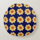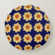 Yellow Dahlia Floral Pattern on Blue Round Cushion