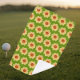 Yellow Dahlia Floral Pattern on Green Golf Towel