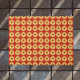 Large, decorative doormat that features the photo image of a little, yellow Dahlia flower on a bright, red background and printed in a repeating pattern. Use indoors or in covered entryway areas. A lovely, floral design!
