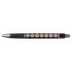 Cool and trendy pen that features an image of a yellow Dahlia flower on a navy blue background and printed in a repeating pattern.