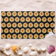 Have fun in the sun and beach with this large beach towel that features the image of a yellow Dahlia flower on a black background and printed in a repeating pattern. A fun, floral design!