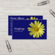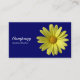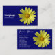 A business card with a yellow daisy photo motif. Business name etc on the front with other details on the reverse with the same motif and style.