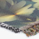 A quality printed throw has its advantages. This is a much finer weave throw than its loopier cousins, and though lighter, it is worth the investment for custom room accessorizing. The back is much prettier than the typical brown, and the fringe on the long sides very vivid, the selvage nicely done. Before photographing, I washed the throw in cold water, delicate, with a thicker woven throw the same size. On tumble dry low, this throw was dry in half the time as the other. This is a very practical quality if you use throws for furniture covers or to wrap up in frequently. The sleekness of the fabric makes it a great layer for accenting or protecting without the feeling of sitting on too much stuff. Perfect for napping or when you feel a light chill coming on. The color printing is beautiful and on this fabric, matched the design and color of my Photoshop image. This is an advantage for blending room fabrics and colors. The fringe on the short sides prints the colors from the design image and therefore varies from the side fringe. I streaked a white fractal line through the plaid pattern to give the illusion of weaving. This printed as crisp as an illusory thread, and put some white in the short side fringe, showing another advantage of print vs loomed- for artistic purposes, line lines, detail, and color integrity can be planned and preserved. My loomed throws have color limitations and more of a needlepoint texture. Print throws reproduce an exact image. The throw felt a little stiff straight out of the package, but this went away in the first delicate wash. Of course I searched the wash water for ink or bleeding and there was none.