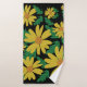 A bright floral design which includes yellow daisy flower heads together with green leaves, arranged in a pattern.