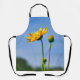 Close up of the head of a yellow daisy, also known as Helenium, bursting into bloom against a blue sky