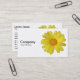 A business card template with an isolated photo image of a yellow daisy after a rain shower. Suitable for a variety of businesses. Ready to be customised. The company details are on the front with name and contact details on the reverse side. Background colours are customisable.