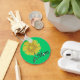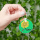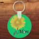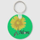 This image is of a yellow daisy on a stem with a green leaf. The word "Mum" is printed near the bottom of the design. A green backround was added to this design. Available in an assortment of styles and sizes of these keychains.