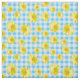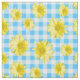 Linda Baysinger Peck’s cheerful, bright yellow daisy flower design, on turquoise and white gingham check background.