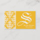 Yellow Damask Modern Monogram Business Card