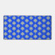 Yellow damask pattern on blue desk mat