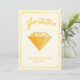 Yellow diamond gemstone. Hand drawn illustration. Customisable Invitation template. Perfect to create of individuell gifts for jewellery store or 50 years golden wedding anniversary celebration and every one who loves gemstones.