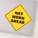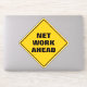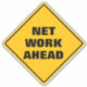 Funny classic yellow diamond caution road sign warns of net work ahead in a thick black sans serif font, which is a warning sign for the road work sign that will be coming up next.