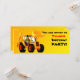 Custom Yellow Digger Birthday Party Invitations, add your own message! Looking for a special digger birthday gift? Kids love diggers, these custom digger invites have a big yellow digger on them. Add your own name or message. Ideal for the young builder or farmer in your life. Brilliant for a digger themed kid's party. Kids love diggers and building. Great for truck themed children's party. More great digger and excavator birthday and truck gifts from Paul Stickland's TruckStore. How about some fabulous MATCHING TRUCK POSTAGE? Click on the truck postage below to go and choose your favourite matching big trucks!