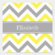 Yellow, Dark Grey and White Large Chevron Zig Zag Pattern, Dark Grey Ribbon Name Monogram Label