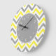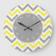 Yellow, Dk Grey Wht Large Chevron ZigZag Pattern Large Clock