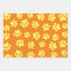 Yellow Dog Paw Prints All Over Orange Wrapping Paper Sheet