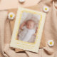 Whimsical and sweet birth announcement card featuring hand drawn photo frame in squiggly yellow line.