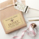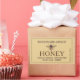 Honey label with Honeybee and double border on a honey-yellow background. Also available on kraft-coloured, white and ivory backgrounds.