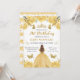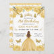 Elegant watercolor Red haired princess in yellow dress design with yellow and gold flowers, butterflies and gold glitter confetti.