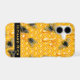 Honeycomb iPhone Design | Nature Aesthetic Case. This playful yellow dripping honeycomb bee art iPhone design is a lighthearted take on nature's tiny workers. Featuring sweet bumble bees dotted across golden honeycomb and sticky drips, the pattern captures the buzzing charm of a wild garden hive.
