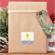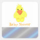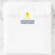 A cute design featuring a little yellow duck with an orange beak. A classy border of blues and grey.