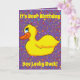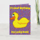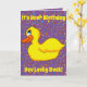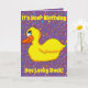 A cute yellow duck makes up this fun card. Customisable so you can add your own text and change the background colour.