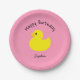 Yellow Duck Happy Birthday Pink Colour Paper Plate