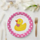 Yellow Duck Pink Polka Dot Baby Shower Paper Plate