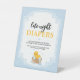 Have your guests decorate some diapers to keep you smiling during those inevitable middle of the night diaper changes. This beautiful sign features a white frame with a blue polka dot background, bubbles and a yellow rubber duck. Change the parents name(s) to suit your family. Matching items available in the 'Yellow Duck Bubble Bath' collection.