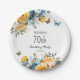 Yellow Dusty Blue Roses Butterflies 70th Birthday Paper Plate