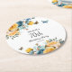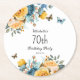 Yellow Dusty Blue Roses Butterflies 70th Birthday Round Paper Coaster