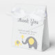 Use our yellow and grey elephant themed baby shower favour boxes with ribbon to package your shower favours in a cute and easy way.