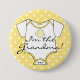 This adorable badge or pin back button tells all your baby shower guests "I'm the Grandma". Yellow and white polka dots background with a yellow baby onsie jumper t-shirt outfit thingy, with a little yellow baby elephant. Personalise this badge for all family relatives! Perfect for sister, aunt, great grandmother, God mother or MOMMY! Make one for everyone! Don't forget to order one for your baby book. This image is available in other colours! Please visit my store "The Hungarican Princess" at www.zazzle.com/hungaricanprincess* and look in my "Oh Baby" category department. Congratulations!