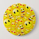 Cute happy yellow emoji cartoon symbols pattern button badge that's perfect for your emoji theme party.