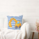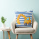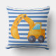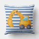 Yellow Excavator Square Cushion with blue stripes. Perfect for kids rooms who love construction vehicles.