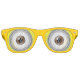 Fun yellow (or other colour) big brown eyes with goggle frames around them. Look like a cartoon character in these! Kid's or grown-up dress-up costume shades great for fun and games or cosplay.