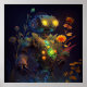 Yellow Eyes Tropical Flowers Robot Poster