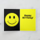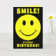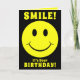 Smile its your Birthday! Cute yellow happy faces. Surround yourself with an uplifting cheerful design that promotes cheerfulness, positivity, happiness, joy, goodness, with these smiling faces. A friendly, welcoming graphic design in bright yellow, and black. The inside says Happy Birthday!