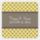 Trendy and chic Fancy Lattice Wedding Stickers featuring a stylish circle and diamond studded pattern over a vibrant lemon zest yellow background with a broad two-toned brown border. These elegant wedding stickers are perfect for a modern wedding. Easy to customise, simply add your wedding details in the text fields provided. Click "Customise It" to find more personalisation options.